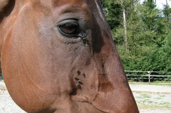 Flies can bother horses and spread disease.